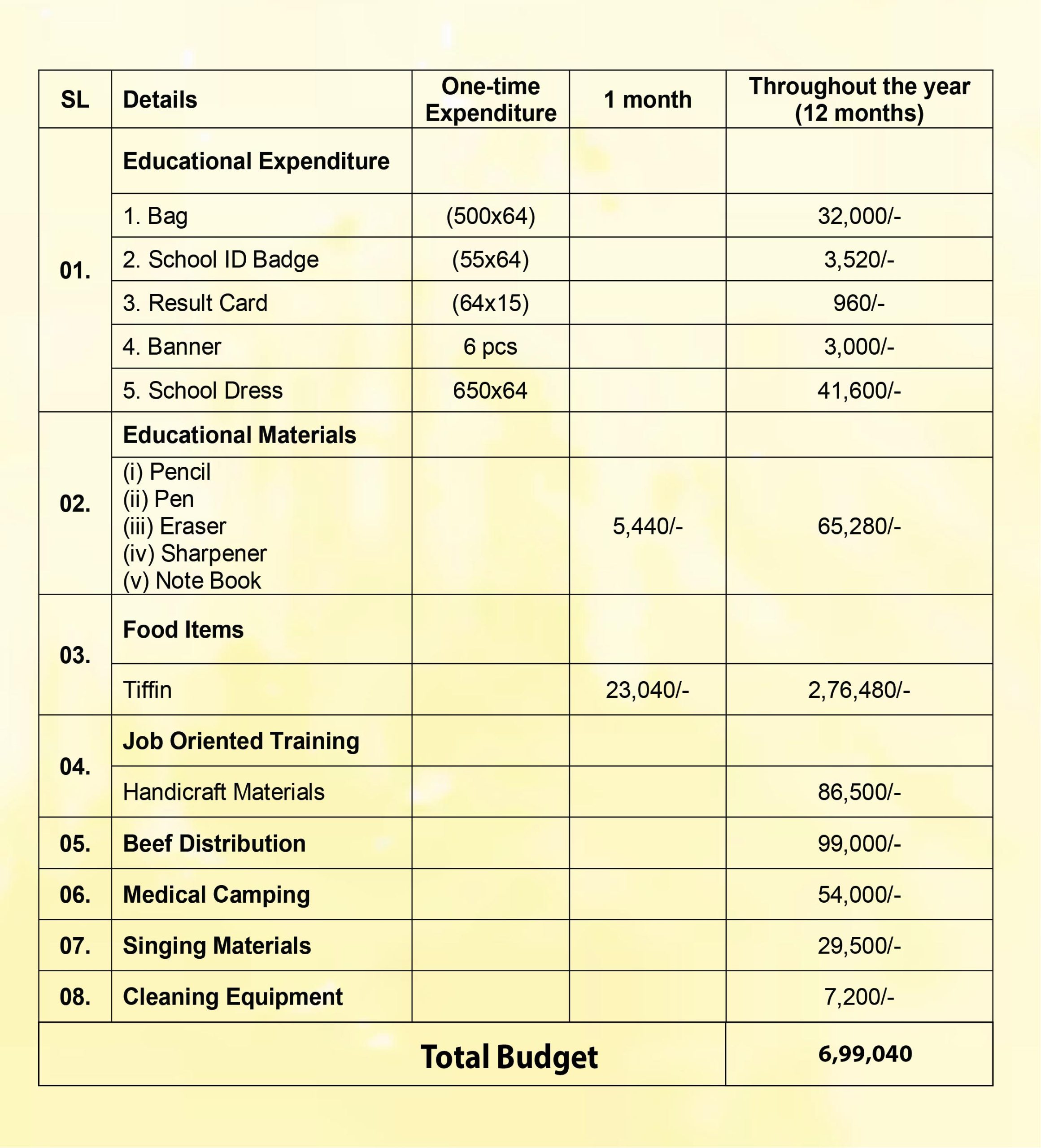 Thanks to the generous support of BACHAO, an ongoing education program for street children is in place, running from January 1st to December 31st. This program includes regular examinations to monitor their progress, as well as consistent food security to meet the children’s daily nutritional needs. A medical camp is organized monthly to attend to their health, and job-oriented training programs are introduced to equip them with practical skills.